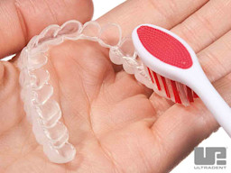 Clean tray with soft toothbrush and water. Remind patient to follow the whitening regimen you have established.