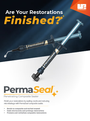 PermaSeal composite sealer is a light-cured, methacrylate-based, unfilled resin. Its low viscosity allows excellent penetration, and the ultrathin layer minimizes the need for occlusal adjustment.