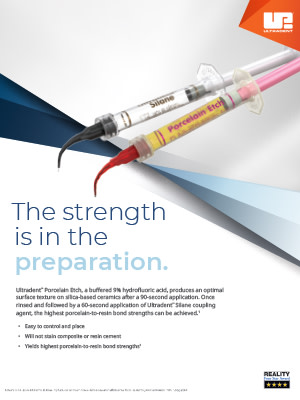 Studies have demonstrated that Silane, when used with Porcelain Etch and a quality bonding resin, yields the highest bond strength to porcelain when compared with other porcelain bonding products.1 Both Porcelain Etch and Silane may be used intraorally or extraorally.